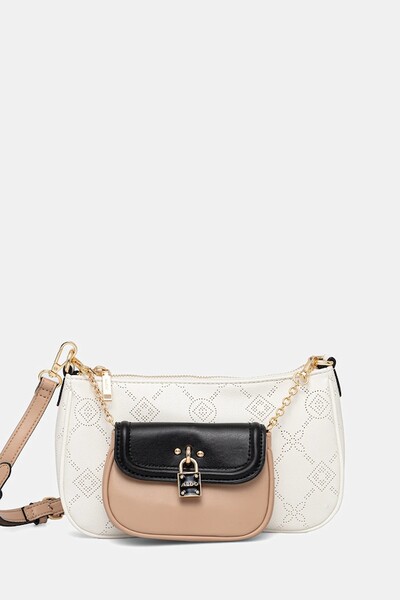 Небольшая сумочка из коллекции Aldo. Модель на молнии, выполнена из искусственной кожи. В комплект входит кошелёк для монет. - Изделие содержит переработанные волокнистые материалы. - Застежка-молния. - Съемный регулируемый ремешок. - Модель на подкладке. - Не подходит для формата А4. - Спереди прикреплена небольшая сумка, в которой можно безопасно хранить телефон или другие мелкие предметы. - Имеет два внутренних кармана: один прорезной, другой на молнии. - Ширина у основания: 22 см. - Высота: 14 см. - Глубина: 5 см.