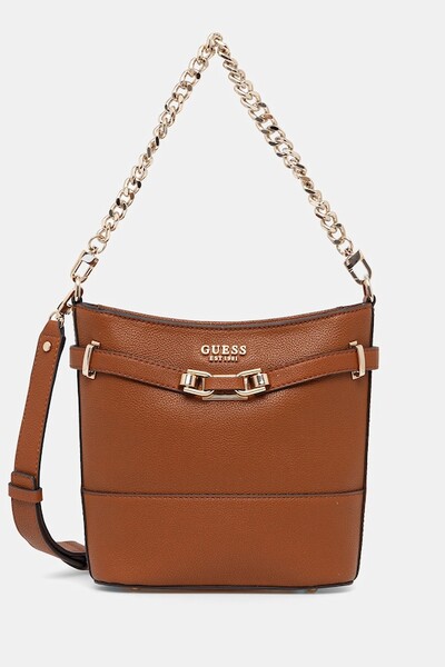 Небольшая сумочка из коллекции Guess. Модель на молнии изготовлена из искусственной кожи, которую легко чистить и ухаживать. Входящий в комплект тканевый пыльник защитит сумку от пыли. - Отделение на молнии. - Карман на молнии на задней стороне позволяет безопасно хранить мелкие предметы. - Имеет внутренний карман на молнии и отделения для карт. - Усиленное дно сумки позволяет изделию долго сохранять форму. - Модель оснащена металлическими ножками, защищающими дно сумки. - Сумка для ношения в руке или на плече. - Имеет съемную ручку и съемный регулируемый ремень. - Не подходит для формата А4. - Модель на подкладке. - Количество внутренних карманов на молнии: 1. - Количество слотов для карт: 3. - Глубина: 8,5 см. - Высота: 22 см. - Ширина у основания: 21,5 см.
