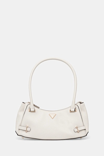 Небольшая сумочка из коллекции Guess. Модель на молнии, выполнена из экокожи. - Имеет три отделения. - Застежка-молния. - Внутренние отделения для карт. - Модель на подкладке. - Модель оснащена металлическими ножками, защищающими дно сумки. - Ручки для удобной переноски в руке или на плече. - Не подходит для формата А4. - Входящий в комплект тканевый чехол защищает изделие от пыли. - Глубина: 10 см. - Высота: 12,5 см. - Ширина у основания: 27,5 см. - Длина ручки: 56 см.