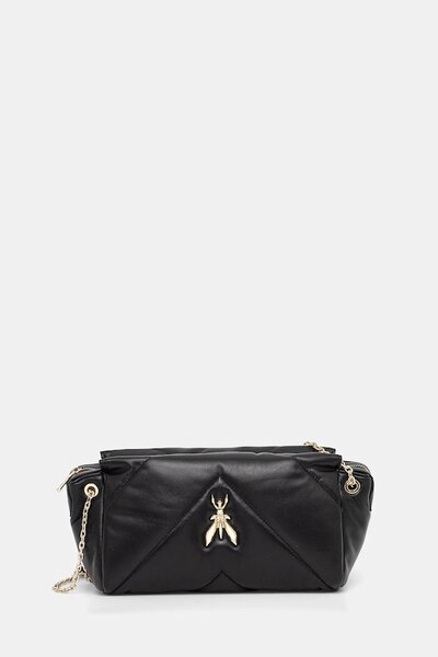 Небольшая сумочка из коллекции Patrizia Pepe. Модель на молнии из натуральной кожи. - Модель из линейки Go Green, изготовленная из волокон, полученных с использованием экологичных производственных процессов, что снижает их воздействие на окружающую среду. - Застежка-молния. - Имеет два внутренних кармана: один прорезной, другой на молнии. - Модель на подкладке. - Не подходит для формата А4. - Несъемный, регулируемый ремешок. - Входящий в комплект тканевый чехол защищает изделие от пыли. - Глубина: 15,5 см. - Высота: 18 см. - Ширина у основания: 29 см.