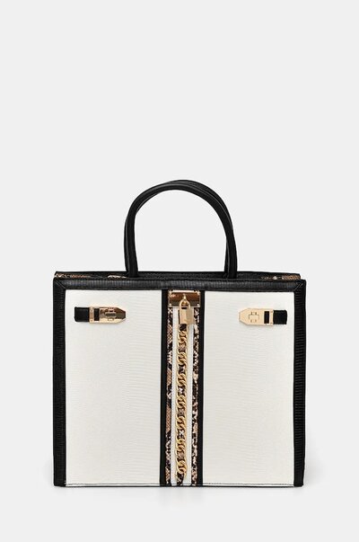Большая сумка из коллекции Aldo. Модель на молнии, выполнена из синтетического материала. - Изделие содержит переработанные волокнистые материалы. - Застежка-молния. - Три внутренних кармана: один на молнии, два накладных. - Имеет отделение для карт. - Короткие ручки для удобной переноски в руке или на плече. - Вмещает формат А4. - Длина ручки: 35 см. - Глубина: 14 см. - Высота: 29 см. - Ширина у основания: 36 см.