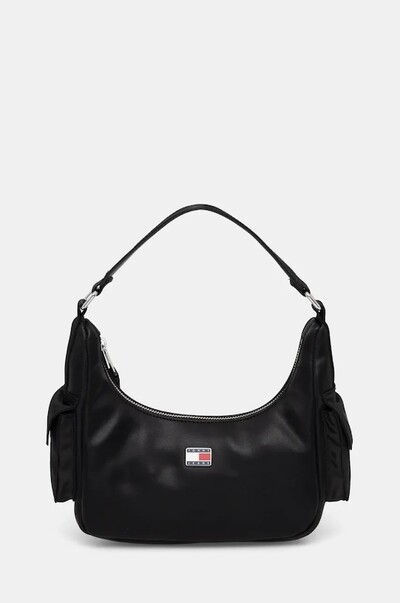 Небольшая сумочка из коллекции Tommy Jeans. Модель на молнии, выполнена из искусственной кожи. - Модель с подкладкой, частично изготовленной из переработанного полиуретана. - Застежка-молния. - Внутренний карман на молнии - Короткая ручка. - Не подходит для формата А4. - Нашивка с логотипом спереди. - Длина ручки: 32 см. - Глубина: 8 см. - Высота: 13 см. - Ширина у основания: 23 см.