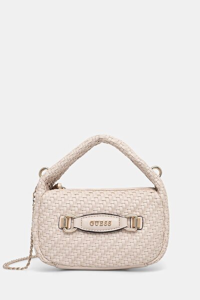 Небольшая сумочка из коллекции Guess. Модель на молнии, выполнена из экокожи. - Застежка-молния. - Модель на подкладке. - Имеет внутренний карман на молнии и отделения для карт. - Сумка для ношения в руке или на плече. - Имеет ручку и съемный нерегулируемый ремень. - Не подходит для формата А4. - Входящий в комплект тканевый чехол защищает изделие от пыли. - Глубина: 7 см. - Высота: 11 см. - Ширина у основания: 18 см.