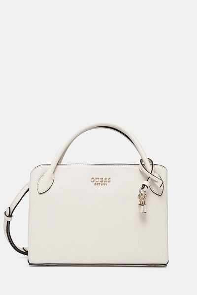 Сумка-тоут среднего размера из коллекции Guess. Модель на молнии выполнена из экокожи. - Имеет два отделения: одно на молнии, другое на кнопке. - Имеет два отделения. - Карман на молнии сзади. - Три внутренних кармана: один на молнии, два накладных. - Имеет ручки и съемный регулируемый ремень. - В комплект модели входит брелок. - Не подходит для формата А4. - Входящий в комплект тканевый чехол защищает изделие от пыли. - Ширина у основания: 28 см. - Высота: 20 см. - Глубина: 9 см.