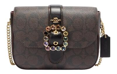Сумка через плечо Gemma из лакированного холста с гладкой кожей Trumpets для женщин, темно-коричневая Coach ce623-imosn