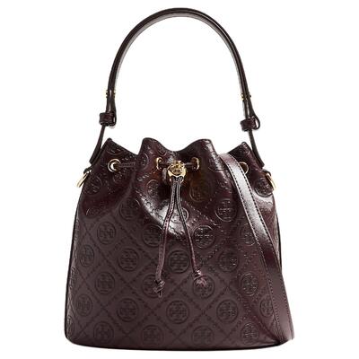 Сумка через плечо T Monogram из кожи, сумка-ведро, кроссбоди, женская сумка темно-бордового цвета Tory Burch 158529-601