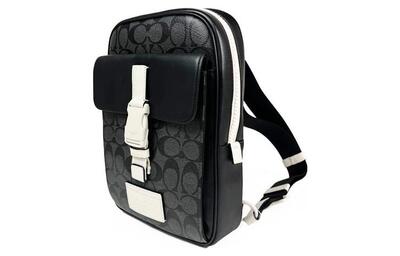 Сумка через плечо Coach черно-белая мужская большая из холста с кожаными вставками c6645-qbthw