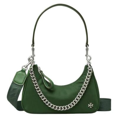 MERCER Переработанный нейлон с кожаной отделкой полумесяц сумка портативная через плечо сумка на плечо женская темно-зеленая Tory Burch 146365-300
