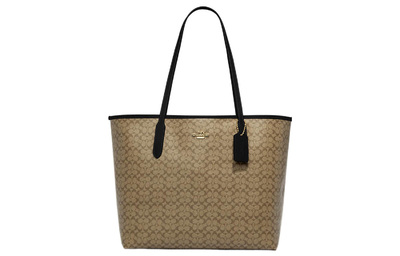 Городской холщовый мешок с кожаными вставками Сумка-шоппер Ручная сумка Наплечная сумка Женская хаки Coach cj942-imcbi