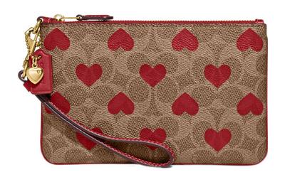 Сумка-клатч Heart Canvas с кожаными вставками и манжетами из телячьей кожи Trumpets для женщин коричневый Coach cf265-b4p22