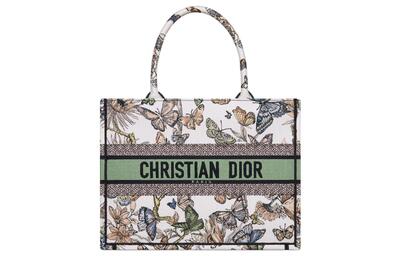 Вышитая сумка-шоппер, хозяйственная сумка, дамская сумка среднего размера белая и разноцветная Christian Dior m1296zesr-m20e