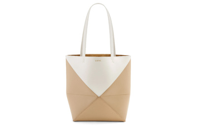 Блестящая кожаная сумка-шоппер из телячьей кожи, повседневная женская мягкая белая с бумажным декором Loewe a779g50x18-8487