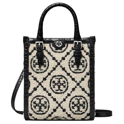 Футболка с монограммой T, терракотовый цветочный узор, крокодиловый принт, тисненая кожаная сумка через плечо миниатюрная женская черная Tory Burch 152402-001