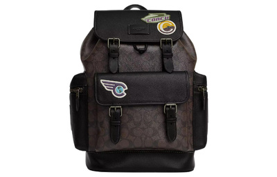 Спринт Жаккард Гладкая Кожа Сзади Гладкая Телячья Кожа Рюкзак Тубэс Мужской Черный Coach cp098-qbmaa