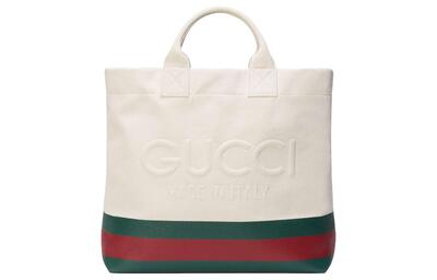Натуральная холщовая сумка-шоппер Плечевая сумка Через плечо Клатч Холщовая сумка Средний размер Мужская Белая Зеленая Gucci 782741-fac4w-8477