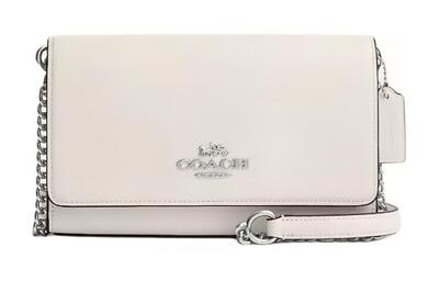 Клатч из телячьей кожи, сумка через плечо, кросс-боди Трампетс женская серебристая и мелово-белая Coach cp034-svha