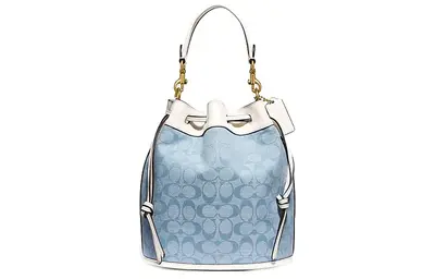 Сумка через плечо из холста с кожаными деталями, средний размер, женская, бело-голубая деним Coach c4693-b4sux