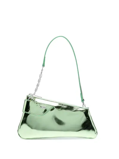Подробнее о товаре: • зеленый • телячья кожа • лакированная отделка • зеркальное покрытие • серебристый металлический логотип спереди • серебристый логотип • гравировка логотипа • золотистая фурнитура с выгравированным логотипом • застежка на молнии сверху • съемный ремень на плечо • основное отделение • внутреннее отделение для карт • жаккардовая подкладка с логотипом