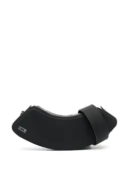 Серебристая фурнитура, серебристый логотип, закругленная форма, съемный регулируемый ремень на плечо, застежка на молнии сверху и основное отделение.