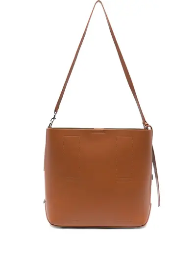 Плечевой ремень из коричневой телячьей кожи с панелями, кожаная бирка, застежка-молния сверху