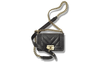 Leboy V С тиснением под зерно Клапанная сумка из телячьей кожи, Женская миниатюрная сумка через плечо, на пояс Чёрный Chanel a67364-b07913-94305