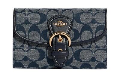 Льняной клатч-кошелёк с кожаными вставками мини женский джинсово-синий Coach c8308-imdei