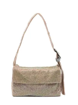 Золотистый, украшения из горного хрусталя, фурнитура в тон, откидной клапан, потайная застежка на молнии сверху, регулируемый ремень на плечо, основное отделение, нашивка с логотипом внутри и шелковая подкладка.