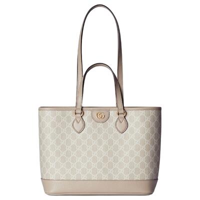 Gucci Сумка-шоппер Ophidia из холста с кожаной отделкой малого размера женская в цвете экрю и белом 765043-faa4g-9897