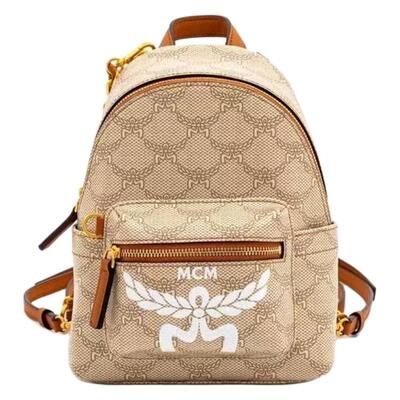 MCM Женский рюкзак экстра мини из прорезиненной ткани с кожаной спинкой бежевый mmkesve03i9001