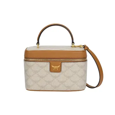 MCM Косметичка из холста с отделкой из кожи наппа Сумка через плече Сумка кроссбоди Трампетс Женская бежевая mwresac02i9001