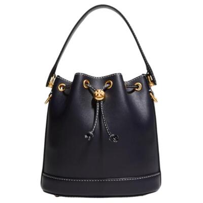 Tory Burch Кожаная сумка-ведро с монограммой T через плечо женская в морском темно-синем черном золотом 80504-458