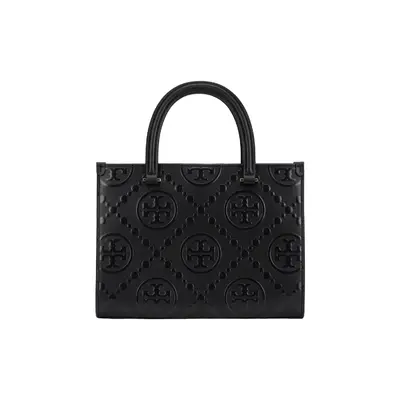 Tory Burch Монограмма Т Контрастное Тиснение Квадратная Сумка Тота Чёрная 162013-001