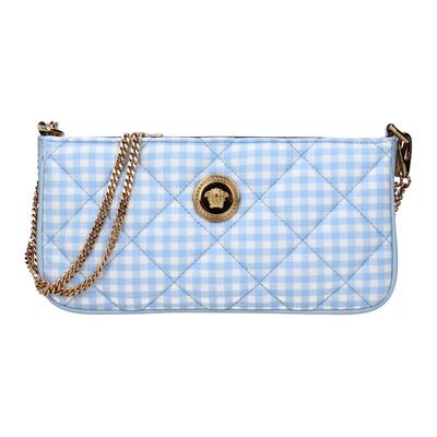 Versace Мини-сумка через плечо из ткани с кожаными вставками женская светло-голубая 10155411a139842ve7v
