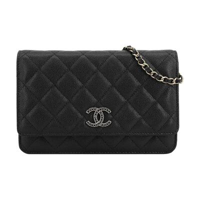 Chanel Женская чёрная сумка через плечо из зернёной телячьей кожи с кристаллами Кошелёк ap3395-b12928-94305