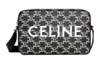 Celine Триумф холщовая с телячьей кожей плечевая сумка через плечо средняя мужская черно-белая 194502fq1-38aw