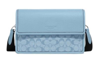 Coach Тканевая с кожаными вставками наплечная сумка через плечо среднего размера женская светло-голубая ch828-svlb