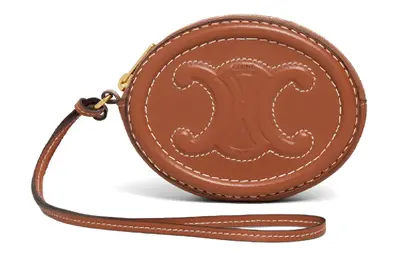 Celine Триумфальный гладкий телячьей кожи круглый клатч кошелек для монет ультрамаленький женский рыжевато-коричневый 10i483dpq-04lu