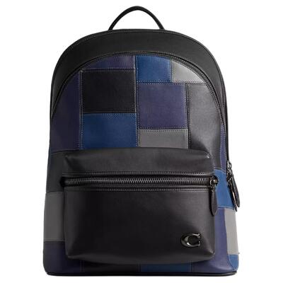 Coach Гладкий кожаный рюкзак большой мужской черный и синий cv929-blc