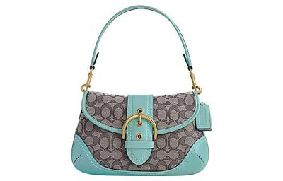 Сумка через плечо Soho из ткани с кожаными вставками в форме полумесяца для женщин, синий и серый Coach cj814-b4vsw