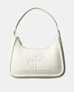 Белая сумка на плечо с логотипом CK в тон. Застежка-молния