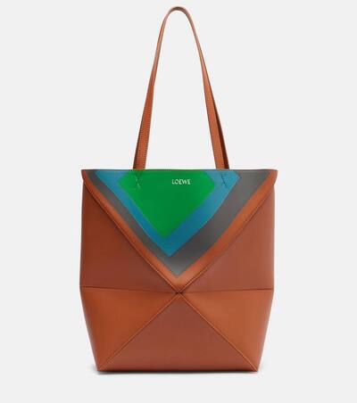 Сумка-тоут Puzzle Fold от Loewe — это гибкая и в то же время архитектурная конструкция, которая складывается до плоского состояния, делая её идеальным спутником в дороге. Эта сумка-тоут среднего размера, выполненная в коричневом цвете с ярким квадратным мотивом Анни Альберс, снаружи выполнена из кожи, а внутри — из замши. Бренд: Loewe Цвет: Caramel/Bright Green