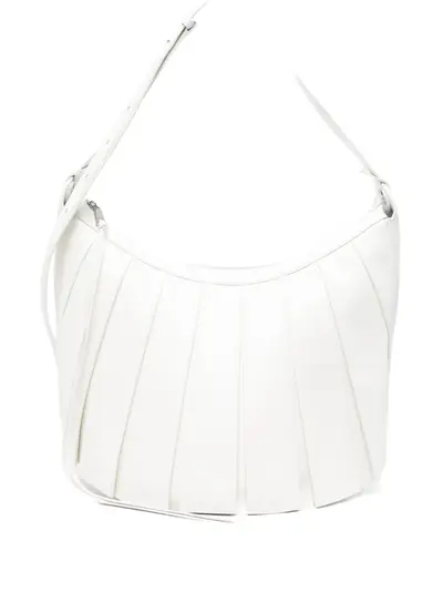 Подробнее о товаре:БелыйКожаПлиссированный дизайнРегулируемая верхняя ручкаВерхняя застежка-молнияЛоготип