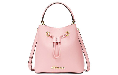 Кожаная сумка-ведро из коровьей кожи, наплечная сумка, кроссбоди, дамская сумочка Trumpets нежно-розового цвета Michael Kors, Set (Bag+Dust Bag) 35t0gu2c0l-powder-blush