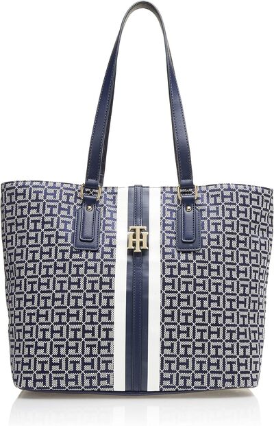 Женская сумка-тоут с фирменной полосой Tommy Hilfiger в виде женского флага и золотой фурнитурой TH. Двойные ручки с золотой фурнитурой. Плоское дно, застежка-молния сверху. Внутренняя часть из нейлона на подкладке с карманом на молнии на стенке и накладным карманом. Эта сумка Tommy Hilfiger - универсальная и незаменимая вещь, идеально подходящая для вашей следующей рабочей сумки. Наша женская сумка-тоут станет стильным дополнением к вашей коллекции дорожных сумок для уикенда. Длина 48 см; высота 28 см; ширина 16 см; высота до середины бедра 23 см.