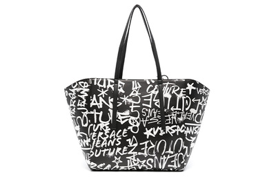 Сумка-шоппер, хозяйственная сумка, женская сумка Regular из полиэстера с полиуретаном, черно-белая Versace, Set (Bag+Dust Bag) 75va4bk1zs808l01