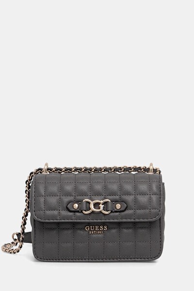 Небольшая сумочка из коллекции Guess. Модель на молнии, выполнена из экокожи. - Клапан застегивается на магнит. - Не подходит для формата А4. - Несъемный, нерегулируемый ремешок. - Модель на подкладке. - Имеет два внутренних кармана: один прорезной, другой на молнии. - Длина ремешка: 120 см. - Глубина: 7 см. - Высота: 12 см. - Ширина у основания: 17 см.
